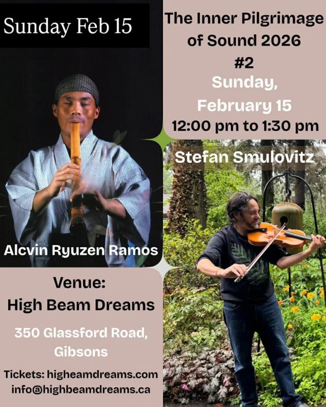 604-563-1561 Shakuhachi bamboo flute master, Alvin Ryūzen Ramos will infuse the evening with guided silent meditation and sacred solo bamboo zen flute atmospheres. Later in the evening, Alvin will be joined by his friends, Andrew Kim, Little Woo, and Sam Romero, inspiring musical luminaries of the Vancouver conscious community … where they will take you on a journey into sonic mystery and enchanted harmonic convergences.All students of shakuhachi are encouraged to come and join Alcvin for RO blowing at the end of the night.Donations welcome.Doors: 7:00 pm